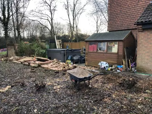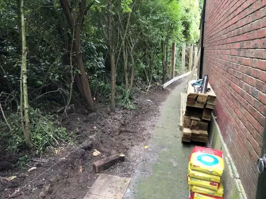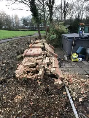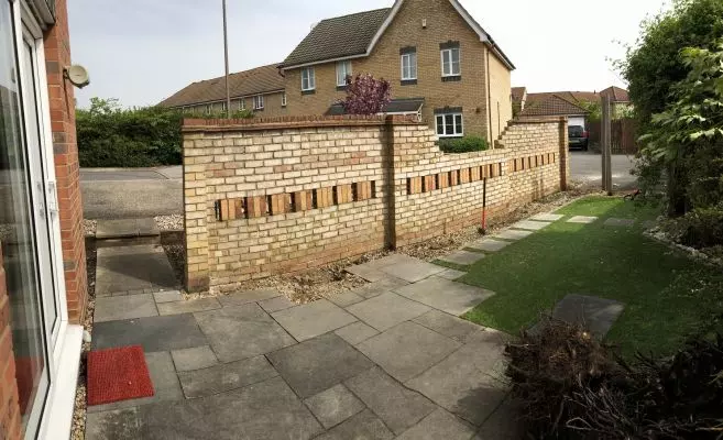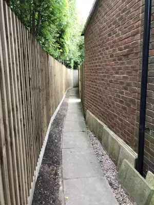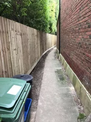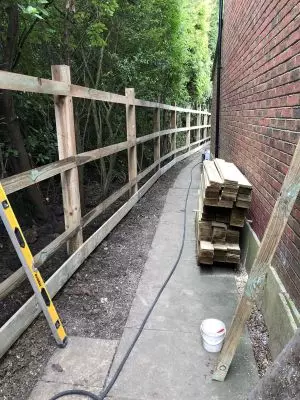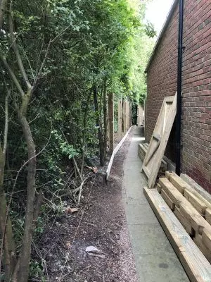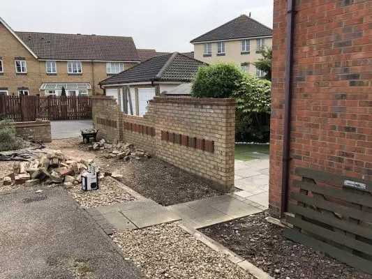 Brick wall removal ( unsafe) Close board fencing with a cap New gate with key lock
