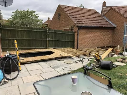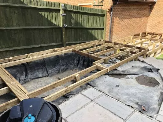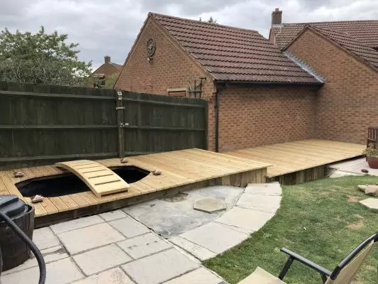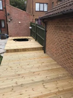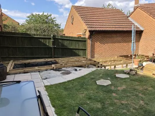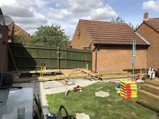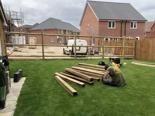5ft close board fencing and raised decking in front of new by folding doors Job at Sherington vill...